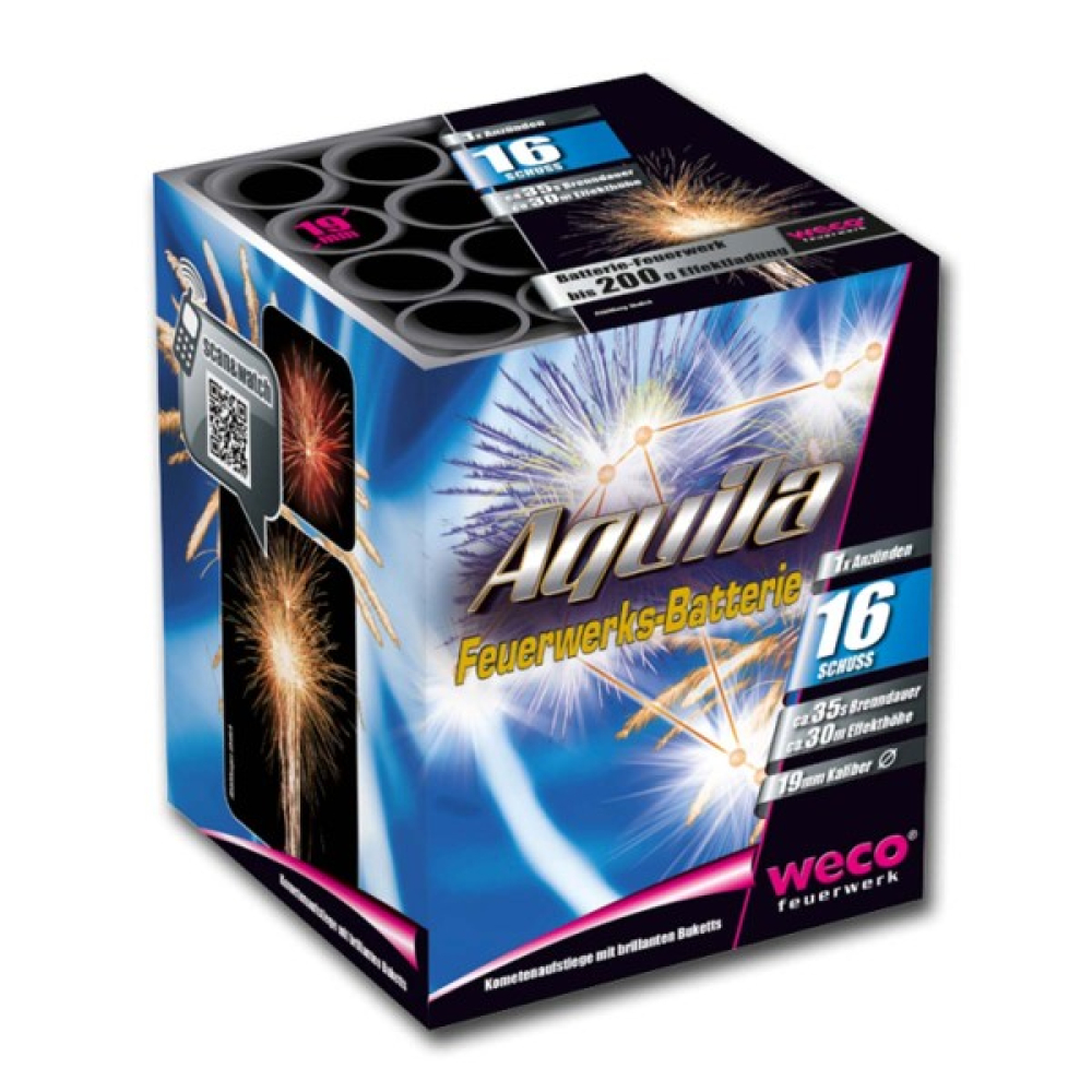 Silberne Kometenaufstiege mit brillanten Buketts in Rot und Grün; jeweils mit lautem Knall.