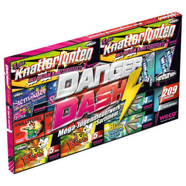 Der ultimative Jugendfeuerwerk-Pyro-Spaß, u.a. mit kultigen Knallteufeln, tollen Silberwirbeln, schrillen Blitz-Knatterkegeln, leuchtenden Sterntalern u.v.m..