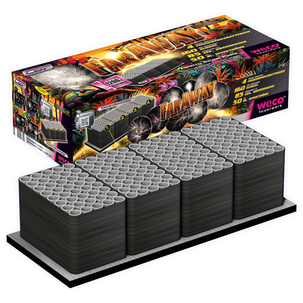 FarAway von Weco Feuerwerk ist ein 160 Schuss verbund mit ein Brenndauer insgesamt ca. 85 Sekunden