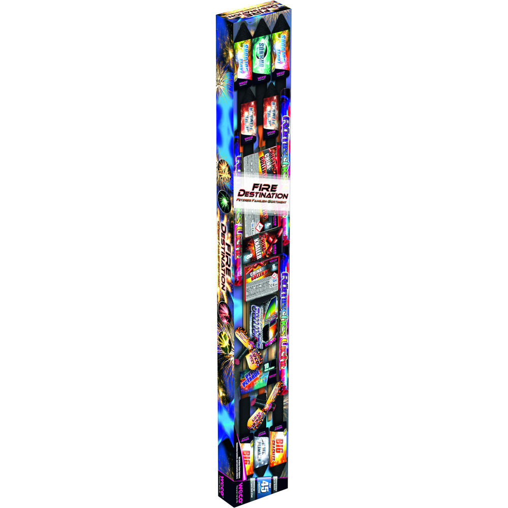Fire Destination von Weco Feuerwerk ist ein Familien-Sortiment mit ca. 46 Einzelteilen, 13-fach sortiert.