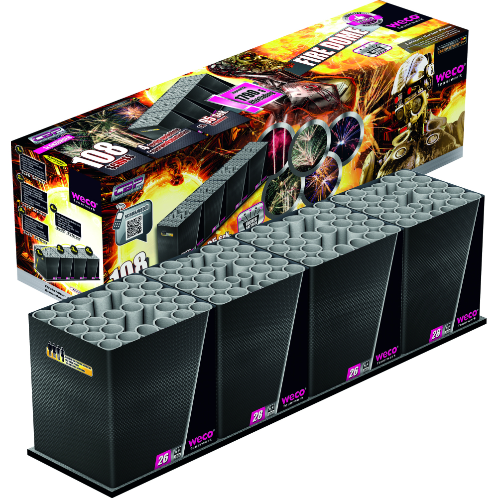 Fire Dome von Weco Feuerwerk ist ein 108 Schuss Verbund mit ein Brenndauer insgesamt ca. 95 Sekunden