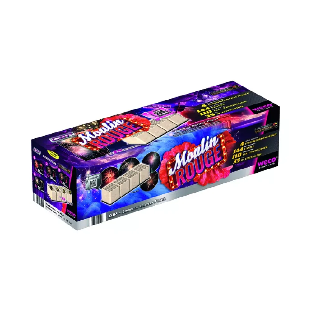 Moulin Rouge von Weco Feuerwerk ist ein 144 Schuss verbund mit ein Brenndauer insgesamt ca. 110 Sekunden