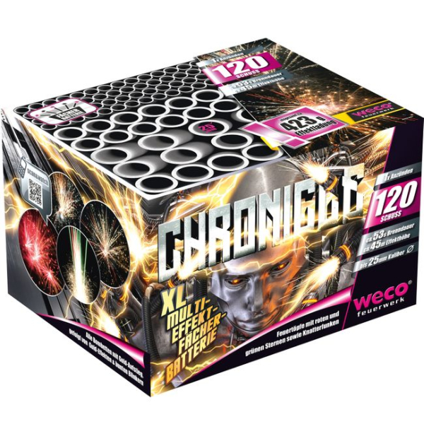 Chronicle van Weco Feuerwerkis een verbluffend vuurwerkspektakel met schitterende rode en groene sterren en knetterende vonken. Al het vuurwerk heeft een gouden gloed, gevolgd door prachtige gouden effecten en kleurrijke flitsen.