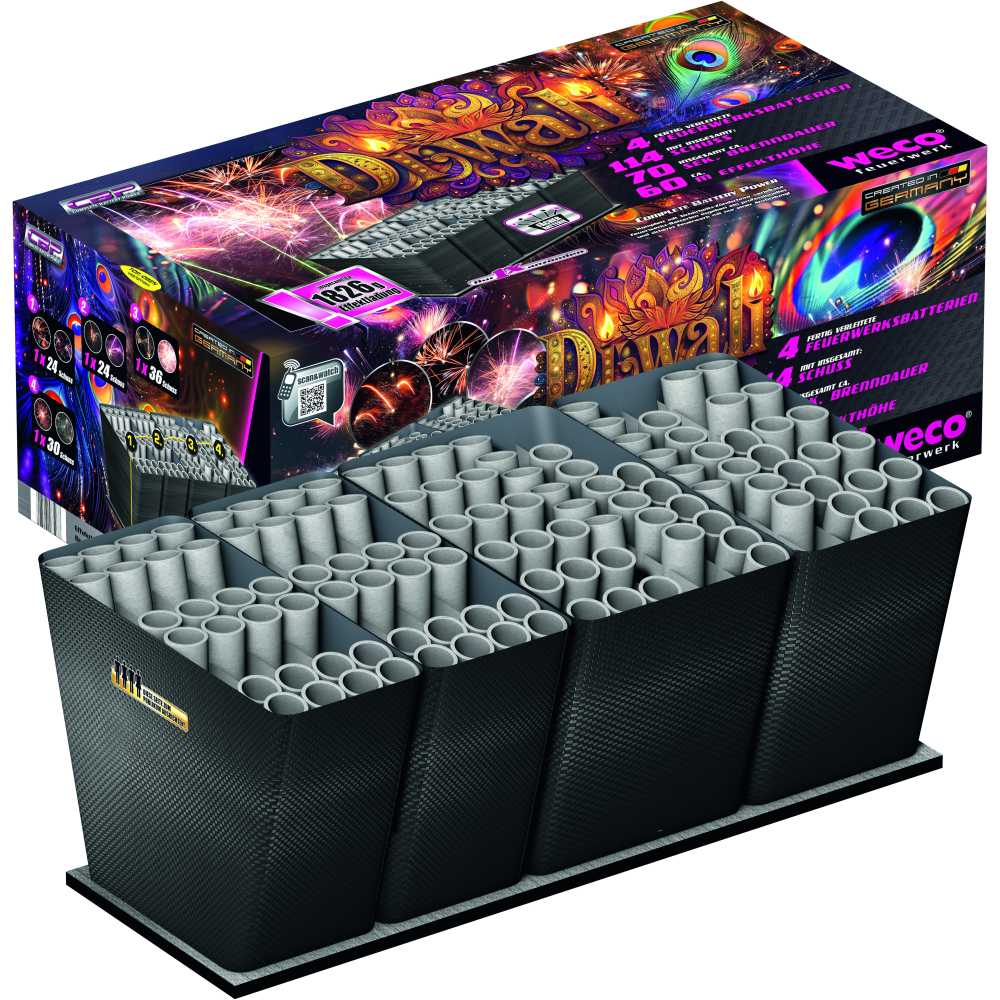 Diwali van Weco Fireworks is een compound van 114 schoten met een totale brandduur van ongeveer 70 seconden.