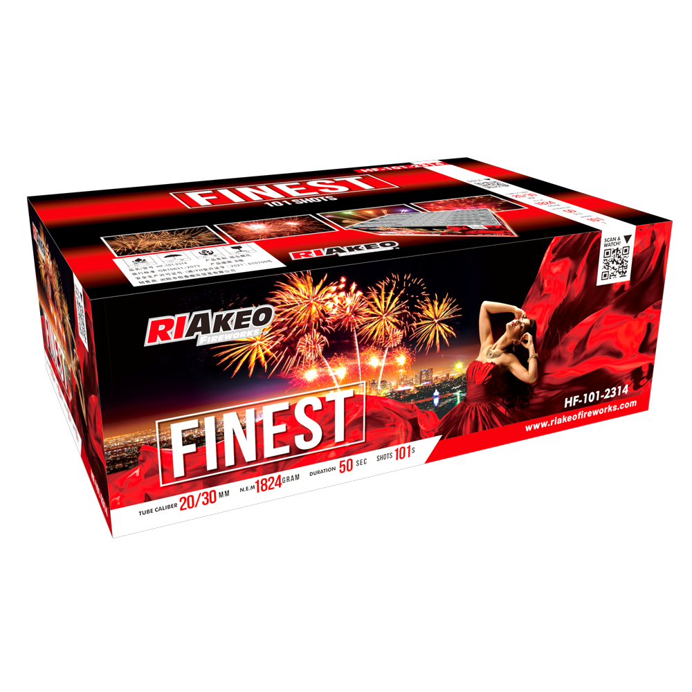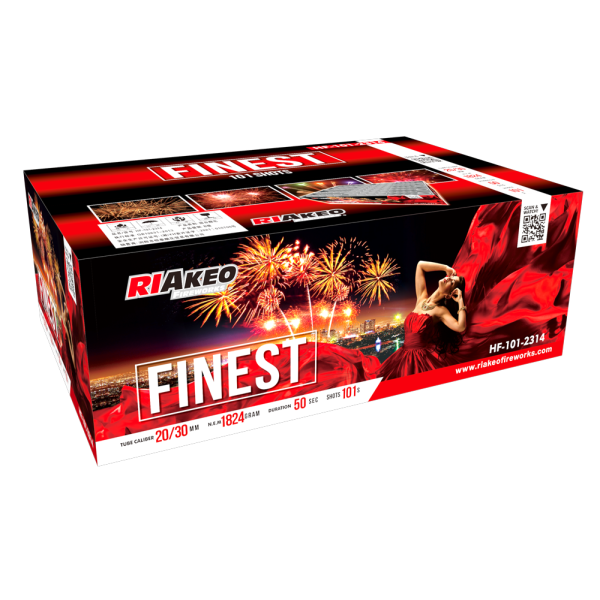 De Finest van Riakeo is een vuurwerkbatterij met 101 schoten en verbluffende effecten zoals gouden wilgen, sprankelende twinkellichtjes en gloeiende dahlia's. Perfect voor oudejaarsavond!