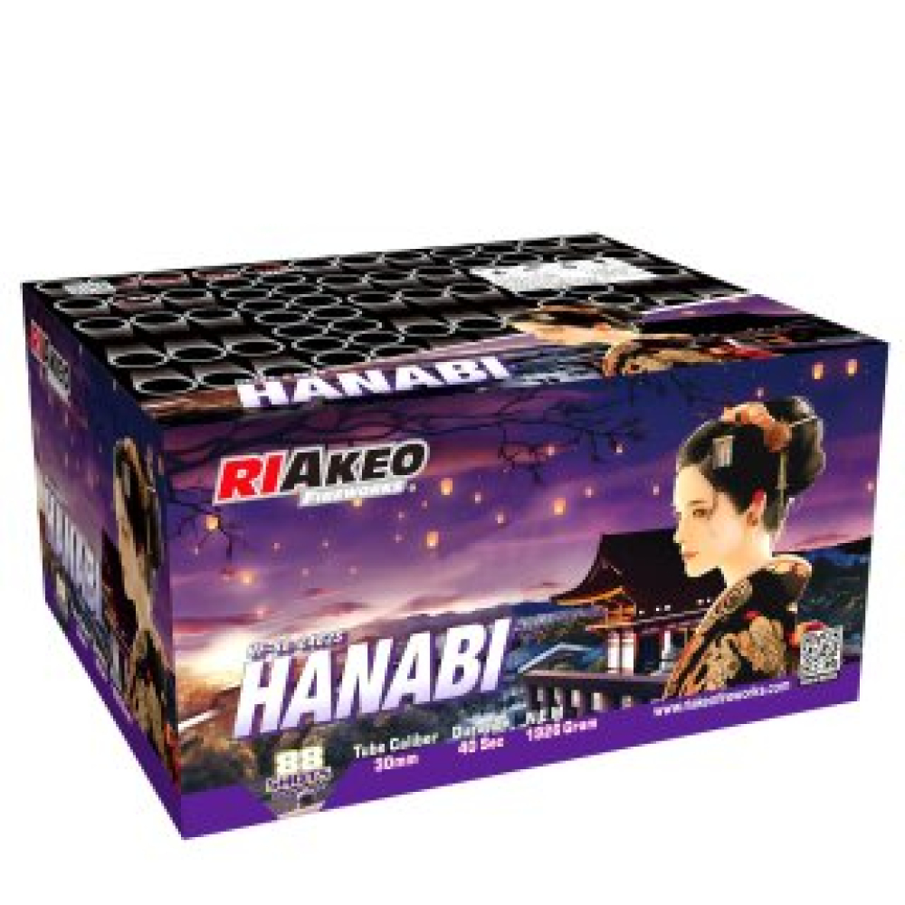 Hanabi van Riakeo: 88 schoten met felle kleuren, knipperende effecten en gouden wilgen. Een spectaculaire, harmonieus opgebouwde show.