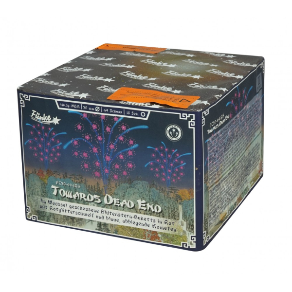Towards Dead End van Funke is een afwisselend boeket van bloemensterren in rood met een rode glitterstaart en blauwe, gebogen kometen.