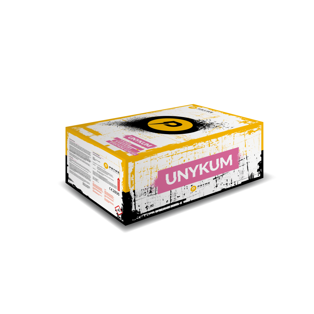Unykum van Pyroprodukt is een compoundvuuwerk met gouden en zilveren spinnersstaarten, brokaatkronen, strobe-effecten en kleurrijke dahlia’s voor een spectaculair schouwspel.